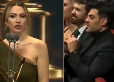“Sevgilim Mehmet, tüm gece hep elimi tuttun teşekkür ederim. Çünkü çok heyecanlıydım. Bugün Dünya Kadın Hakları Günü. Bence önemli bir gün. Böyle bir günde bu kadar değerli bir ödül almak çok değerli. Kadınlar konusu bende çok hassas. Hiçbir zaman da bu konuda susmadım, hiçbir zaman da susmayacağım. Yine çok fazla kadın öldürüldü. Çok fazla kadın kaybettik. Bu ödülü 2018'de de aynı şekilde almıştım. Hayatları kısıtlanan kadınlar için alıyorum.”