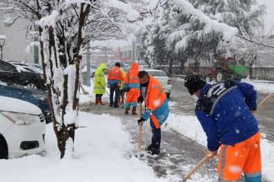 Serdivan'da Karla Kaplanan Kaldırımlar Temizleniyor