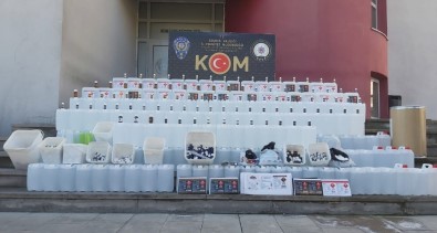 Adana polisinin yaptığı operasyonlarda sahte içki yapımında kullanılan bin 323 litre etil alkol ve 990 alkol kiti ele geçirildi.