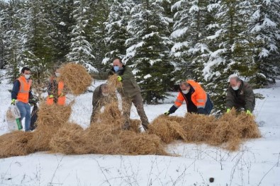 Kütahya’nın Tavşanlı ilçesinde yaban hayvanları için yemleme çalışması yapıldı.