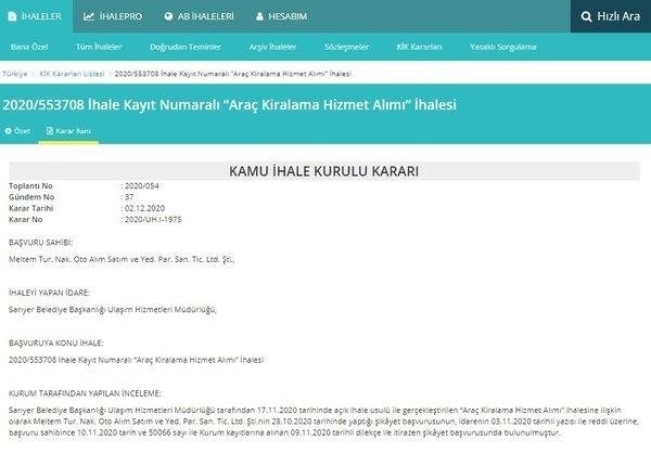 KİK kararını sonucunda şu ifadelere yer verildi: "194 adet araçtan 64'ünün isteklilerin kendi malı olmasının istenildiği, diğer bir ifadeyle söz konusu şartın isteklilerin henüz ihale kendi üzerinde kalmadan en az 64 adet araç satın almasını zorunlu hale getirdiği, ayrıca bu araçlardan aylık kiralama maliyetleri yüksek olarak tespit edilen (Örn: Sepetli Platform 27 mt (Bom), Kanal Açma ve Temizleme Aracı (Vidanjör), Mobil Büfenin tamamı, 2 adet Otobüsten (50+1+1) 1 tanesinin) kendi malı olarak belirlendiği, netice itibariyle söz konusu düzenlemelerin isteklilerin ihaleye katılımını engelleyici ve rekabeti daraltıcı nitelikte olduğu ve idarenin takdir yetkisi kapsamında değerlendirilebilir nitelikte olmadığı değerlendirildiğinden ihalenin iptal edilmesine gerektiği sonucuna varılmıştır.