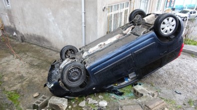 Kaza, Gülüç beldesi Bekyeri Mahallesi’nde meydana geldi. Bekyeri Caddesi’nde seyir halinde olan 06 EYS 28 plakalı araç, rampadan çıktığı esnada sürücüsünün direksiyon hakimiyetini kaybetmesi sonucu, bir evin bahçesine uçarak takla attı. Sürücü Bahadır Ö. (41) kazayı yara almadan atlatırken, eşi Seher Ö. ve kızı Elif Ö. kazayı hafif sıyrıklarla atlattı. Kaza sonrası olay yerine 112 sağlık ve polis ekipleri sevk edildi. Araçtan çıkarılan Seher Ö. ve Elif Ö. kazanın şokunu yaşarken, ekipler yardımıyla ambulans ile evlerine götürüldü. Yağış sonrası kayganlaşan yolda savrulan araç yol kenarındaki briketleri de kırdığı ve takla atan aracın camlarının da patladığı görüldü.