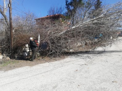 İlçe merkezi Fatih mahallesi Gazi Caddesi üzerinde ise bir evin bahçesinde bulunan kavak ağaçı devrilerek elektrik tellerine zarar verdi.