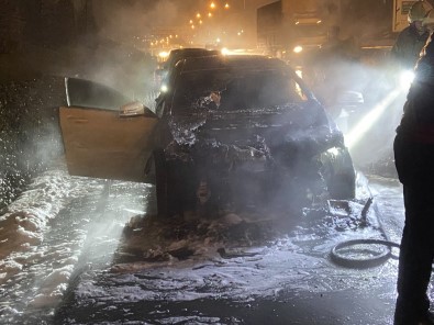 İtfaiye ekiplerinin yaptığı çalışma sonrası araç tamamen söndürüldü. Yangın sonrası kullanılamaz hale gelen otomobilde yangının çıkış nedeni araştırılıyor.