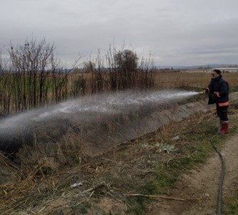 Kütahya’nın Tavşanlı ilçesi Tepecik Beldesi yakınlarında öğle saatlerinde sazlık alanda yangın çıktı.
