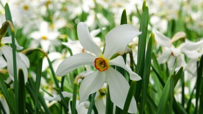 Van’ın merkez Edremit ilçesinde baharın gelişiyle çiçek açan zerrinkadeh (nergis) çiçeği, sunduğu beyaz ve yeşil görüntüsüyle görenleri adeta büyülüyor.