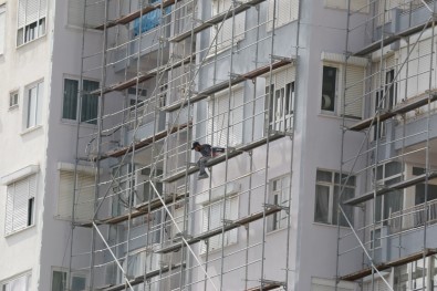 (Özel) İnşaat İşçisinin 10'Uncu Kattaki Tehlikeli Çalışması Yürekleri Ağza Getirdi