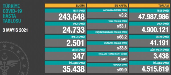 3 Mayıs'ın koronavirüs tablosu açıklandı!