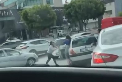 Antalya'da Iki Kadinin, Trafikteki Saç Basa Kavgasi Kamerada