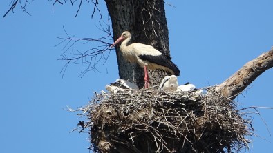 Yuvalarda 3-4 yavru göze çarpiyor. Leylekler ise onlari beslemekle ve büyütmekle mesgul. Yavrular 4 haftalik bakimin ardindan ilk uçus deneyimlerini yasayacaklar.
