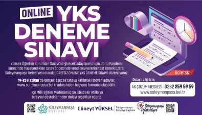Süleymanpasa Belediyesi internet sitesi üzerinden girilecek olan çevrimiçi deneme sinavinda TYT Oturumu 19 Haziran 2021 Cumartesi, AYT Oturumu ise 20 Haziran 2021 Pazar günü gerçeklesecek.