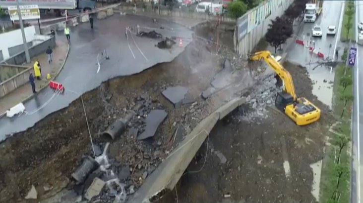 İstanbul'da etkili olan sağanak yağış nedeniyle Başakşehir ilçesinde bulunan bir istinat duvarı ve yol çöktü. Olay yerine gelen ekipler çalışma başlattı.