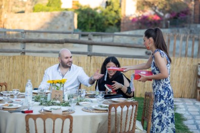 Ilçede yasamini sürdüren yasam koçu ve bilinçalti dönüsüm uzmani Pinar Erdogan ile isletmeci Ege Kiraz, pandemi öncesinde tanisti. Arkadasliklari aska dönüsen çift, korona virüs salgini araya girince evlenemedi. Bu sürede Pinar Erdogan “5 Çikis Yolu” isimli kisisel gelisim kitabini yazdi. Çift, kademeli normallesme baslayinca evlenmeye karar verdi. Bodrum - Turgutreis karayolunda üzerinde faaliyet gösteren bir isletmede açik havada pandemi tedbirleriyle yapilan nikah törenine çiftin ailesi, yakinlari ve arkadaslari katildi.