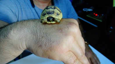 Karaman’in Ermenek ilçesinde bir vatandas yürüyüs yaparken buldugu ceviz büyüklügündeki kaplumbaga yavrusunu milli parklar görevlilerine teslim etti.