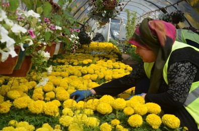 Kirikkale Belediyesi serasinda üretilen çiçekler, cadde ve sokaklari renklendirmeye hazirlaniyor.