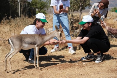 Hatay Büyüksehir Belediyesi Expo Akademiler Direktörlügü tarafindan düzenlenen gezide gönüllüler, dag ceylanlarini elleriyle besleyerek farkli bir deneyim yasama imkani buldu.