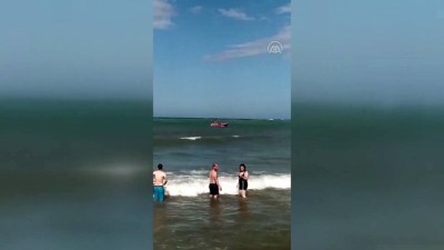 Durumu fark eden vatandaslarin yardim istemesi üzerine balikçilardan Aytaç ve Alper Güzelaydin, tekneleri ile denize açildi.