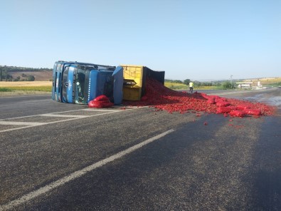 direksiyon hakimiyetini kaybetmesi sonucu kontrolden çikarak devrildi. Karayoluna devrilen tirda yüklü olan biberler yola saçildi. Yola saçilan biberler nedeniyle trafik durdu. Bölge trafik ekiplerinin karayolunu trafige kapatmalarinin ardindan biberler is makineleri ile baska bir tira yüklendi. Devrilen tir sürücüsü Sabri Avci yaralandi. Yarali kaza yerine gelen saglik ekipleri tarafindan Gölbasi Devlet Hastanesine kaldirildi.