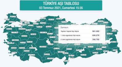 Samsun’da bu zamana kadar 951 bin 92 doz asi yapilirken, 306 bin 750 kisinin ise 2 doz asilama süreci tamamlandi.