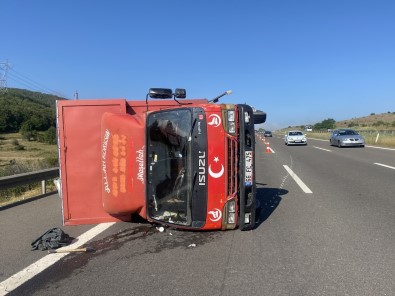 Kaza, TEM Otoyolu Bolu geçisi Asagikuldan mevkiinde meydana geldi. Edinilen bilgiye göre, Istanbul’dan Samsun’a ev esyasi tasiyan S.U. yönetimindeki 66 FC 475 plakali Isuzu marka kamyon, sürücüsünün direksiyon hakimiyetini kaybetmesi sonucu devrildi. Kazada, devrilen kamyonun sürücüsü yaralanirken, durumun haber verilmesi üzerine bölgeye saglik ve polis ekipleri sevk edildi. Kisa sürede adrese ulasan saglik ekipleri, yarali sürücüye ilk müdahaleyi olay yerinde yapti. Daha sonra ambulansa alinan sürücü, tedavi edilmek üzere hastaneye kaldirildi. Hastanede tedaviye alinan sürücünün hayati tehlikesinin bulunmadigi ögrenilirken, polis ekipleri kazayla ilgili inceleme baslatti.