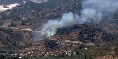 Mugla’nin Milas ilçesinde zeytinlik alanda çikan yangina ekipler havadan ve karadan müdahale ediyor.