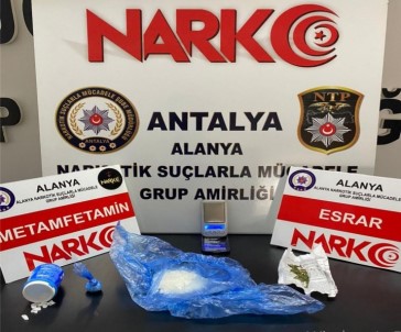 Alanya’da 26 Eylül Pazar günü Narkotik Suçlarla Mücadele Grup Amirligince yapilan çalismalar kapsaminda; Y.P. ve H.M. isimli sahislarin S.P. isimli sahistan uyusturucu madde aldiklari belirlendi. Sahislar, Cikcilli Mahallesi 215. sokakta üzerinde yakalandi. Sahislarin üzerinde 11,59 gram metamfetamin maddesi ele geçirildi. S.P. isimli sahsin ikametinde alinan arama kararina istinaden yapilan aramada 19,43 gram metamfetamin maddesi, 0,84 gram esrar maddesi ve 1 adet hassas terazi ele geçirildi. Olay ile ilgili Y. P. ve H.M. isimli sahislara Uyusturucu Madde Kullanmak suçundan islem yapildi. Yapilan islemin ardindan sahislar serbest birakildi. S.P. isimli sahsa ise Uyusturucu Madde Ticareti Yapmak suçundan islem yapildi. S.P., adliyeye sevk edildi.
