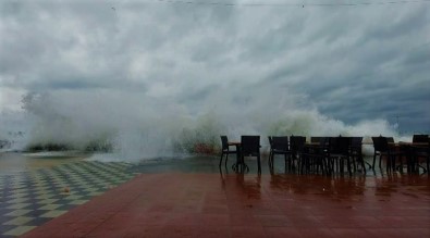 Marmara Denizi’nde dün baslayan poyraz firtinasinin etkisini artirmasi üzerine Tekirdag kiyilarinda olusan dev dalgalar adeta sehre akiyor.