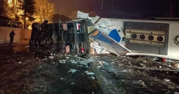 Sivas'ta yolcu otobüsünün devrilerek TIR'a çarpması sonucunda 1 kişi hayatını kaybetti, 17 kişi yaralandı.