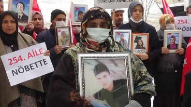 Çocuklarinin terör örgütü PKK mensuplari tarafindan daga kaçirildigi iddiasiyla HDP Diyarbakir il baskanligi önünde evlat nöbeti tutan ailelerin direnisi 871. gününde kar altinda devam ediyor. Ailelerin direnisine Kars’in Digor ilçesinden 254’üncü aile katildi.