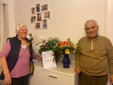Almanya’da Nürnberg Baskonsolosu Serdar Deniz, 65’inci evlilik yil dönümlerini kutlayan Arslan çiftine mektup ve çiçek gönderdi.