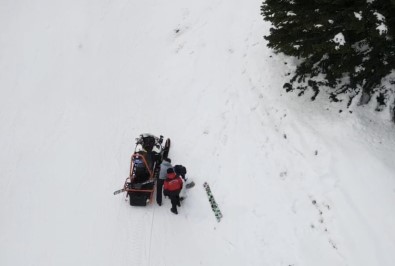 Uludag’da kayak yaptigi esnada düserek ayagini inciten ve bulundugu yerde mahsur kalan tatilcinin imdadina jandarma yetisti. Tatilcinin kurtarilma ani ise drone ile havadan görüntülendi.