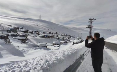 Dogal ve yasli ormanlar içinde yer alan ladin, sariçam ve köknar agaçlarinin etrafina kurulan yayla evlerinin çatilari karla kaplanirken, karayolunda seyahat edenler durup, yol kenarindan bol bol fotograf çekiyor.
