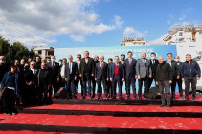 Finike Kanalizasyon Sebeke Hatti insaat çalismasi için Finike’nin Sahilkent Mahallesi Inönü Caddesi’nde tören düzenlendi.