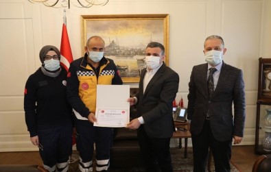 Fedakar Saglik Görevlisine Validen Basari Belgesi