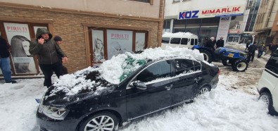 Otomobili Çatidan Düsen Kar Kütlesiyle 1 Dakika Sonra Kullanilamaz Hale Geldi