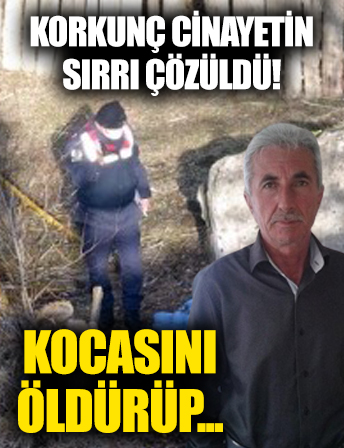 Bolu'daki korkunç cinayetin sırrı çözüldü. Derede cesedi bulunan inşaat işçisi Metin Özalp'in (55), eşi Mürüvet Özalp (54) tarafından başına tahta ile vurularak öldürüldüğü belirlendi.