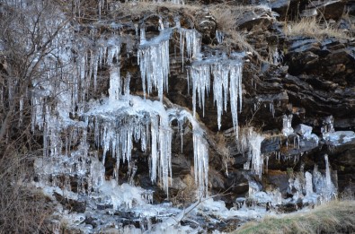 Sirnak'ta Asiri Soguklar 50 Metrelik Selaleyi Dondurdu