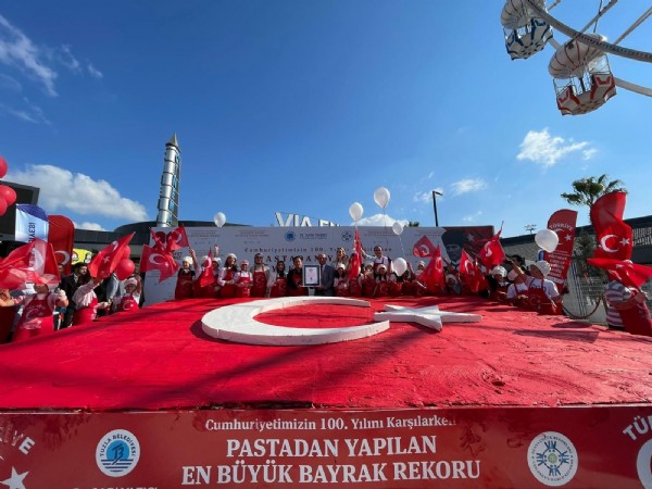 29 Ekim Cumhuriyet Bayramı tüm yurtta olduğu gibi Tuzla'da da kutlanmaya başlandı. Tuzla Belediyesi tarafından düzenlenen organizasyonda Tuzlalı minikler, Tuzla Belediye Başkanı Dr. Şadi Yazıcı ve Başkan Yazıcı'nın eşi Dr. Fatma Yazıcı tarafından yapılan 24 metrekarelik Türk Bayrağı pastası dünya rekoru kırdı. Tuzlalı minikler, program kapsamında Tuzla Marina'da bulunan alanda kendi elleriyle hazırladıkları 100 parçadan oluşan pasta, hijyen şartları altında yan yana dizildi. Pastaların üzerine çocuklar ve Başkan Yazıcı tarafından kırmızı krem şanti sürüldü. Tamamen kırmızı ile kaplanan pastanın üzerine de ay ve yıldız logosu eklendi. İki ayrı masada yapılan pasta, Başkan Yazıcı ve çocuklar tarafından birleştirildi. Birleşimin ardından Dünya Çocuk Rekorları Hakemi Av. Uğur Demircan tarafından ölçümler yapıldı ve dünya rekoru kırıldığı tescillenmiş oldu. Programda Tuzlalı minik çocuklara Cansu Canan Özgen, Yıldız Öz Samaha, Eyüp Kemal Sevinç, İpek Tuzcuoğlu ve Şükran Kaymak da eşlik etti. Program sonrasında bin eşit parçaya bölünen pasta Tuzlalı vatandaşlara ikram edildi.