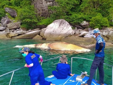 Tayland’in Racha Adasi’nin güney sahiline ölü balina vurdu.