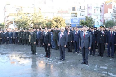 Kaymakamlik, Garnizon Komutanligi, Belediye ile siyasi partilerin ve sivil toplum örgütlerinin çelenklerinin Atatürk Heykeli’ne koyulmasinin ardindan saat 9’u 5 geçe iki dakikalik saygi durusu, ardindan Istiklal Marsi okundu.