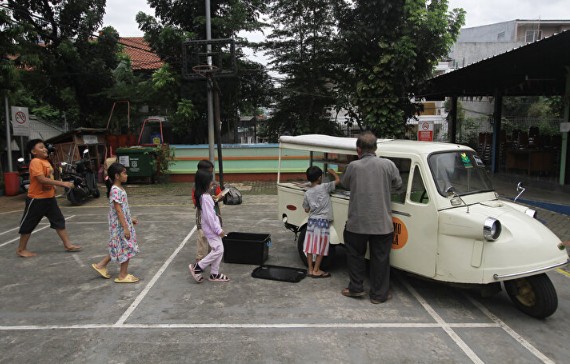 Endonezya'nın başkenti Cakarta'da eski bir araç kütüphaneye çevrildi.Bendungan Hilir bölgesinde mobil kütüphaneye dönüştürülen üç tekerlekli Bemo adındaki araç çocukların ilgisini çekti.