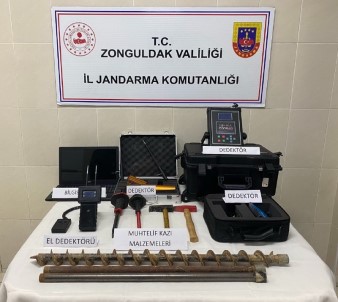Zonguldak’ta jandarma ekiplerince yapilan operasyonda iki süphelinin kaçak kazi yaptigi tespit edildi. Kazida kullanilan dedektör, sondaj makinesine el konuldu.