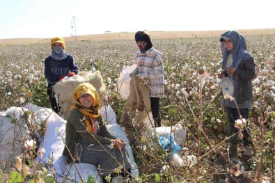 Dikenler arasindan pamuk toplayan genç kizlar, pamuk hasadinda çalisarak, aile bütçesine katkida bulunduklarini belirtti.