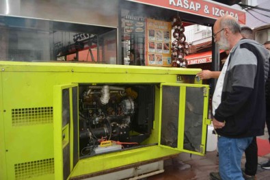 Hayvancilik ve et satis magazalariyla firma sahibi de Talatpasa Caddesi’ndeki magazasinin önüne 55 kilowatlik dev bir jeneratörü getirterek, hem firmasinin hem de çevresindeki esnaflarin elektrik ihtiyacini karsiladi.