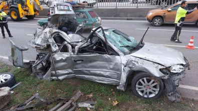 Samsun’da yoldan çikan otomobilin demir korkuluklari parçalayip agaca çarparak hurdaya döndügü kazada, araç sürücüsü agir yaralandi.
