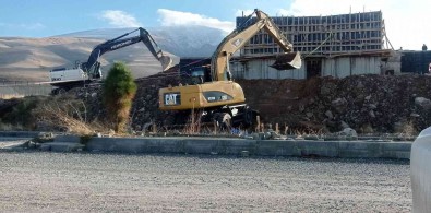 Igdir Üniversitesi içinde bulunan insaat alaninda kalip döküldükten sonra insaat çöktü.