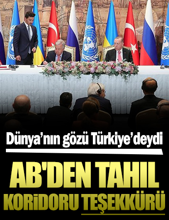 Avrupa Birliği, Rusya'nın Karadeniz Tahıl Girişimi anlaşmasına dönmesindeki rolleri dolayısıyla Birleşmiş Milletler ile Türkiye'ye şükranlarını bildirdi.