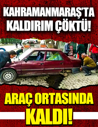 Kahramanmaraş'ta kaldırım çöktü! Otomobil çukurun içinde kaldı