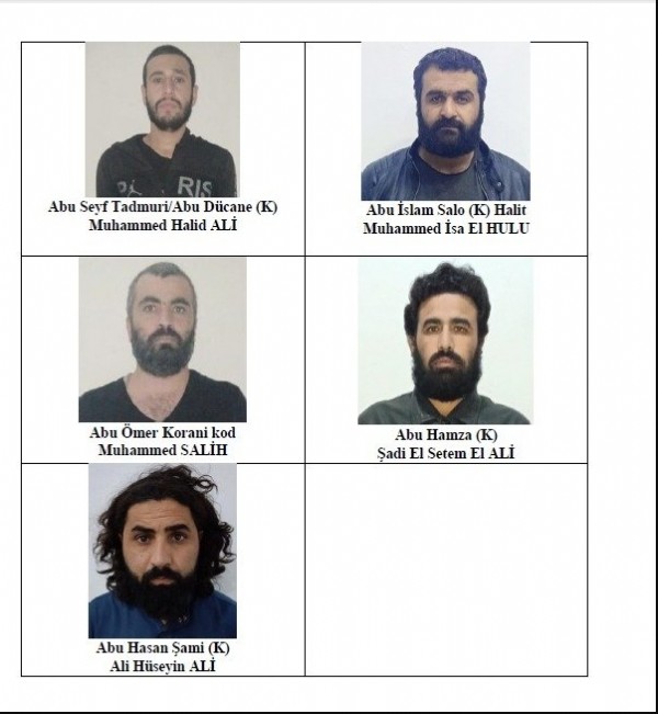 Yakalanan 5 DEAŞ üyesinden Abu Dücane kod adlı Muhammed Halid Ali'nin sözde Barış Pınarı Harekat Alanı sorumlusu olduğu ve Suriye'nin Çöl Bölgesinde faaliyet gösterdiği, Abu Ömer Korani kod adlı Muhammed Salih'in, örgütün talimatı ile çeşitli baskın eylemlerine katıldığı, Abu İslam Salo kod adlı Halit İsa El Hulu ve Abu Hasan Şami kod adlı Ali Hüseyin Ali'nin ise örgüt bünyesinde suikastçı olarak faaliyet gösterdiği öğrenildi.