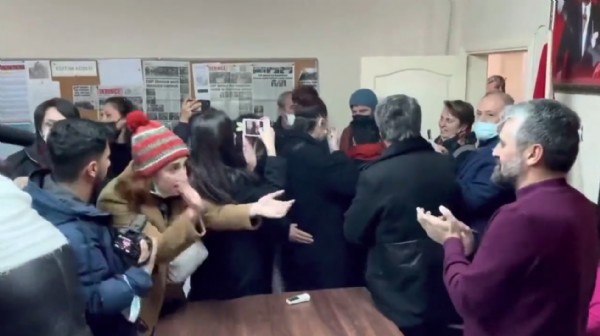 Basın toplantısına katılan üyeler tarafından hem soru sorulması engellenen hem de hakaretlere maruz kalan platform üyesi kadınlar, yaşanan duruma tepki göstererek ilçe binasından ayrıldı.